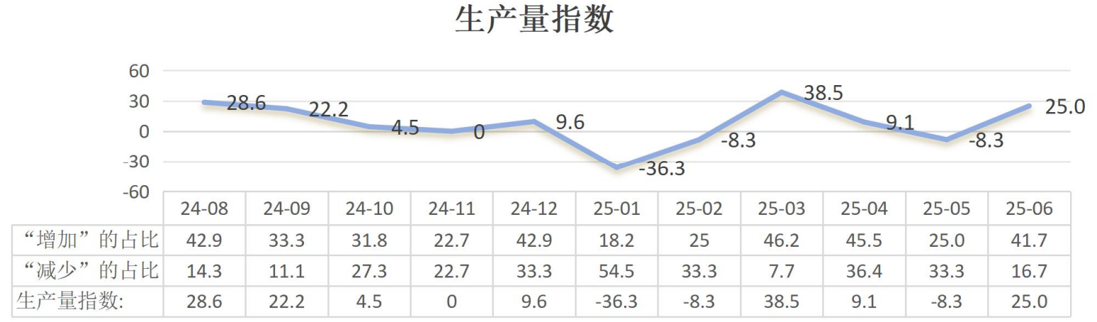 01)生产量:6月份企业主要产品的生产量比上月有所增加。